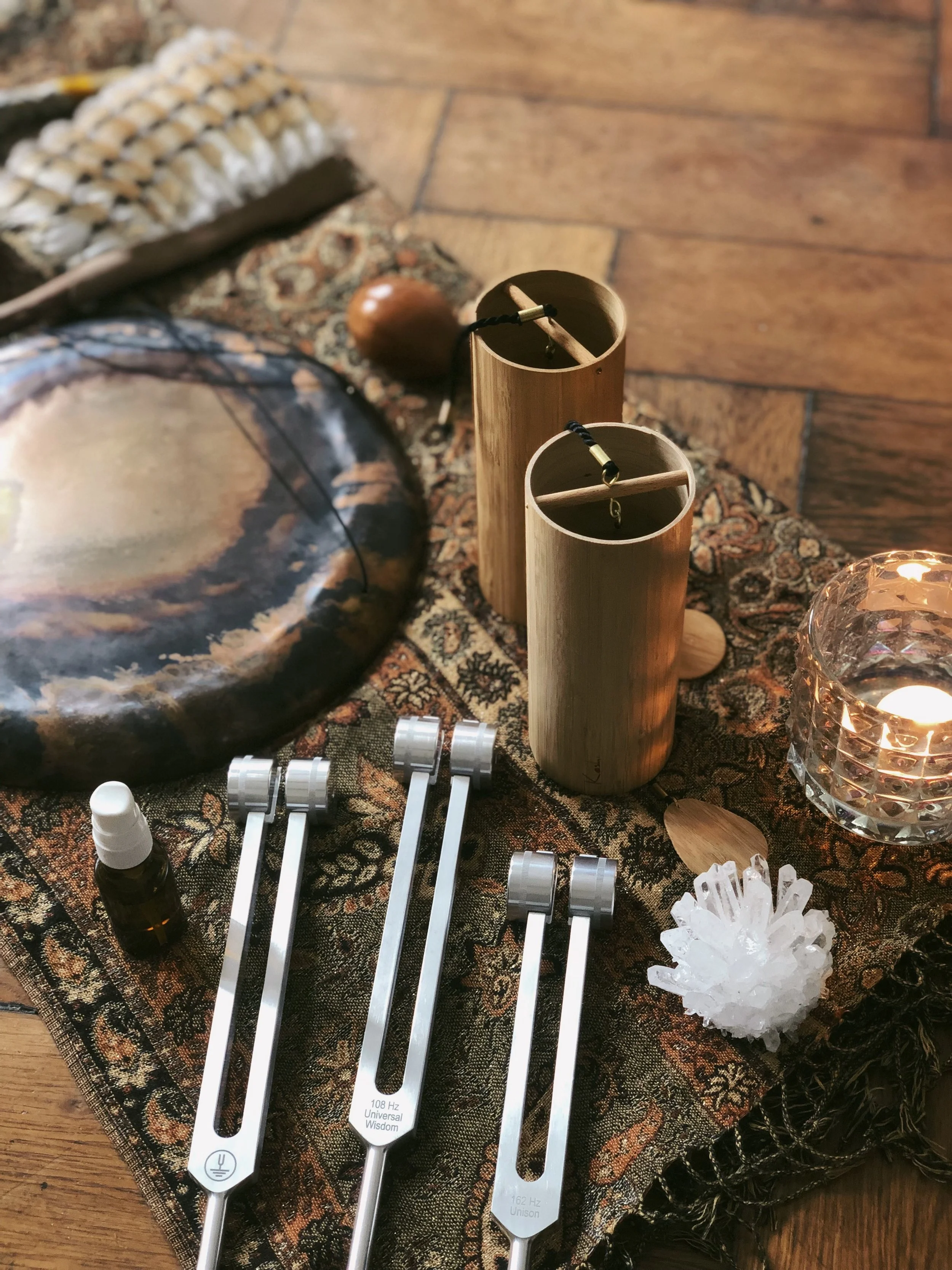 Stimmgabeln wirken durch direkte Berührung am Körper. Ihre Schwingungen helfen den Zellen, wieder in Resonanz zu gehen. Durch sanfte, intuitive Berührung entsteht das Gefühl von Gehaltensein – Sicherheit wird erlernt, das Nervensystem findet Ruhe. Der Körper darf nachnähren, was in der Kindheit gefehlt hat: Unterstützung, Wärme, ein getragener Raum.
