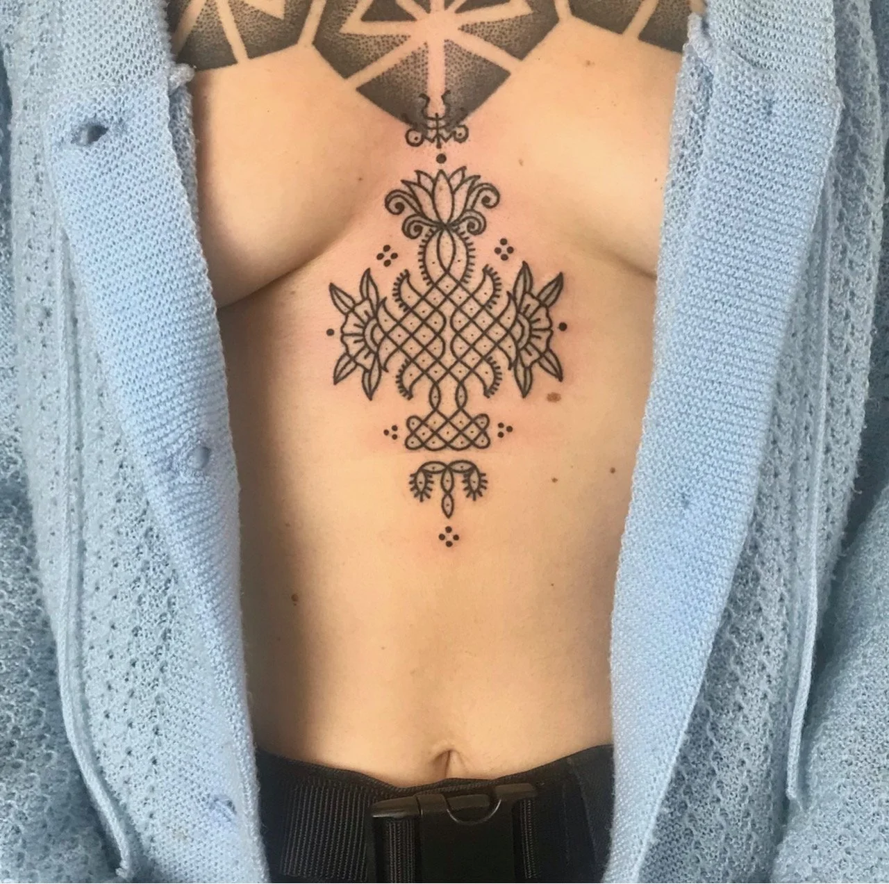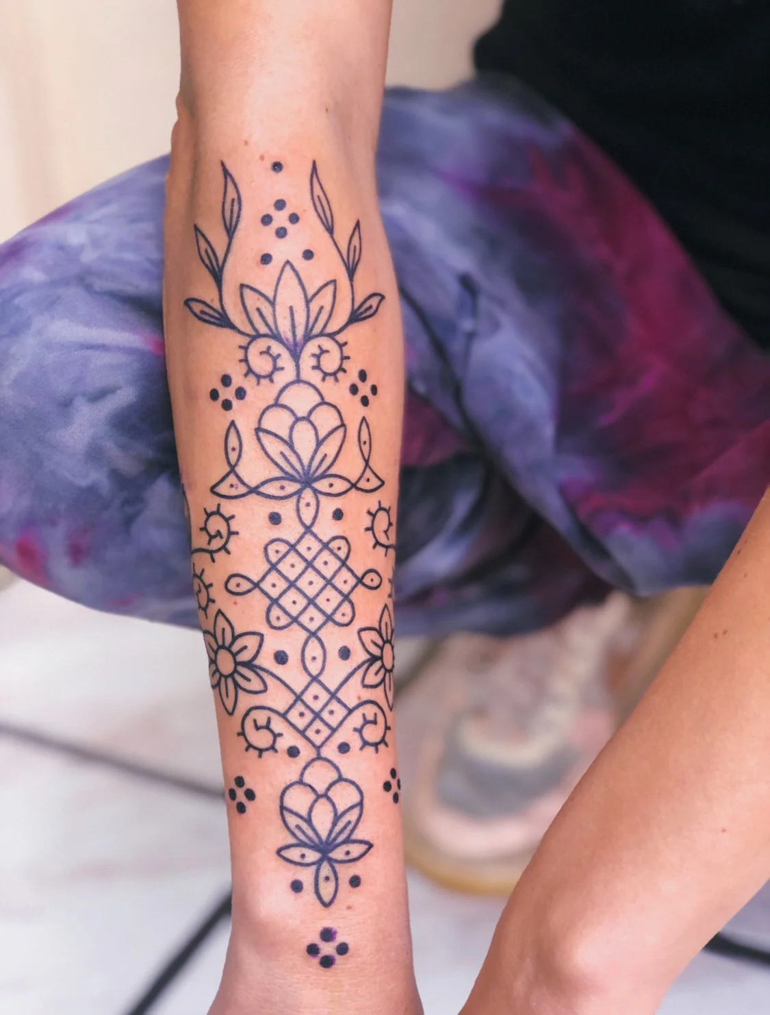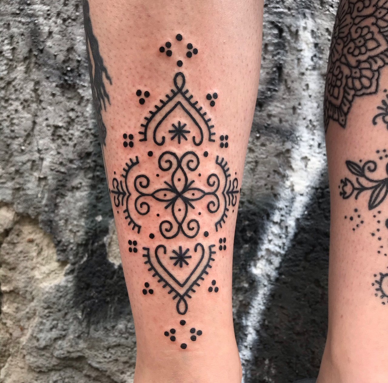 Der zweite Schritt, an einem späteren Tag, ist die Tattoo Session selbst. Auch sie findet in einem rituellen Rahmen statt – begleitet von leiser Musik und reinigendem Räucherwerk. Jedes Design entsteht individuell nach deinen Wünschen und wird nur ein einziges Mal gestochen.